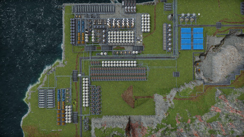 “Introducing: Blottoo’s Clean Air Act. As a first step I banned all H2 Reformers from my island and stopped producing Fertilizer out of Ammonia to save it for H2 production. All Fertilizer that I need comes from Digestate which is a byproduct of my Bio Gas Plant and the Wastewater Treatment. I’m sending all my exhaust to the Exhaust Scrubber and they will make CO2, Sulfur and LP Steam from that. With the LP Steam i make some water in the Thermal Desalinator. I’m mixing Sulfur and Diesel into Rubber and trade that into wood. To get rid of all CO2 I have to turn it into Fuel Gas in a Chemical Plant. For that i need just some H2. In my case roughly 240 H2 in a minute. For that I need a ridiculous amount of 76 Electrolyzer. With the received Fuel Gas I’m running 4 Gas Boilers which are giving Steam for 4 HP Turbines and 2 LP Turbines. DP Steam will be turned into water. The whole process will produce 8 MW of Electrical Power. But the usage of Power is at 12 MW. The gap of 4 MW is a lot of Power that I’m losing for this process, but my loved citizens can be happy now, because I reduced the amount of Air Pollution from average 2K in a year to average 800 in a year.”